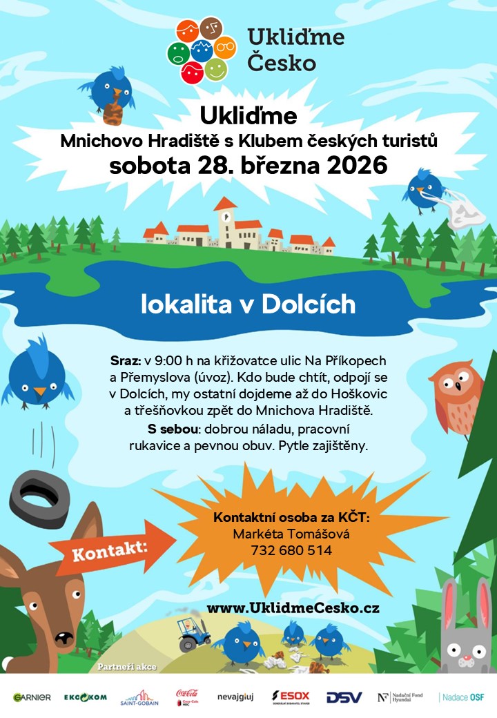 - Sobota 28. 3. 2026 se opět ponese v bohulibém duchu, čeká nás zapojení do celorepublikové akce Ukliďme Česko. Sraz v 9 h na začátku Dolců - odhodlání poprat se s nepořádkem a pracovní rukavice s sebou! Více informací naleznete v přiložené letáčku.